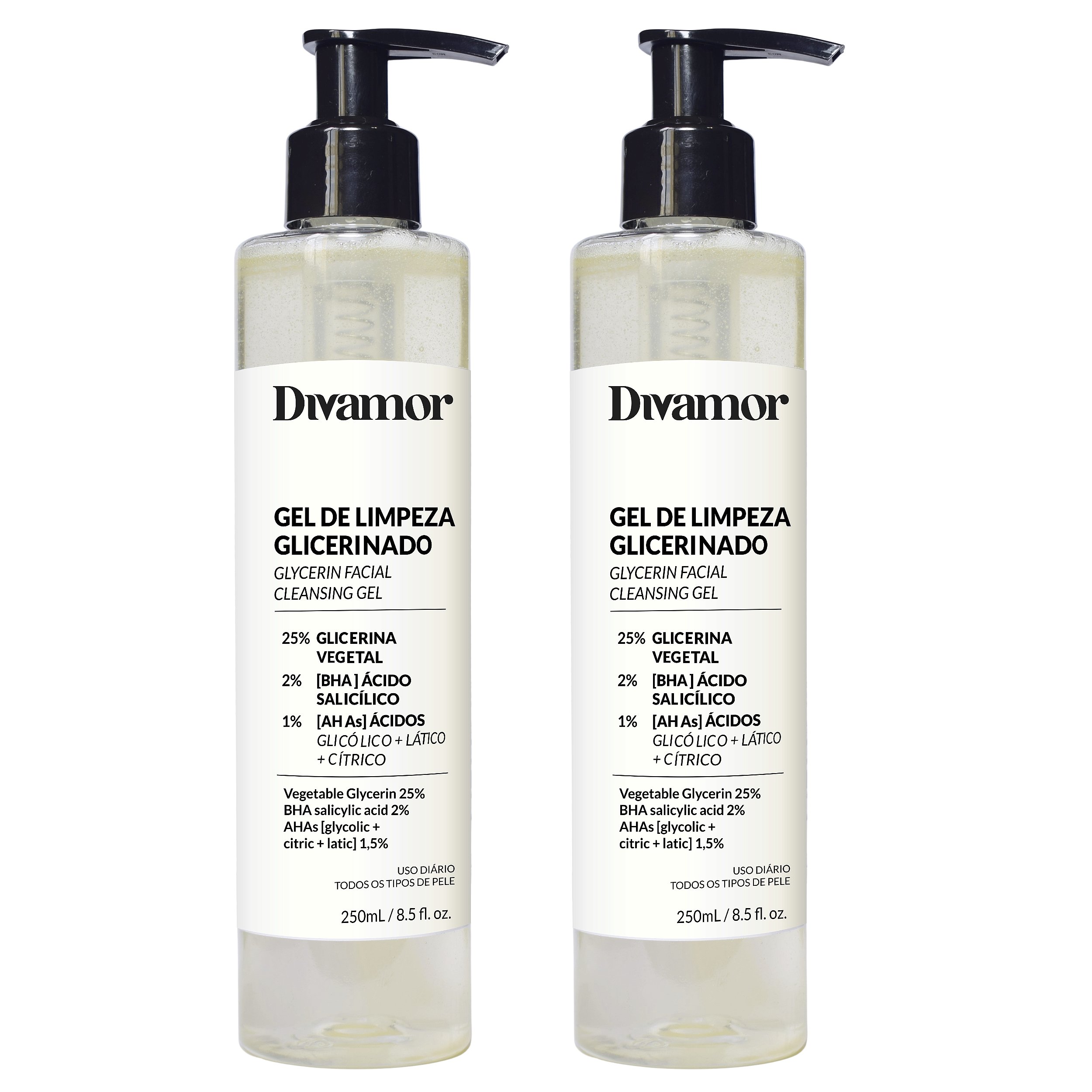 Kit com 2 unidades do Gel de Limpeza Facial Glicerinado 25% – Divamor Cosméticos